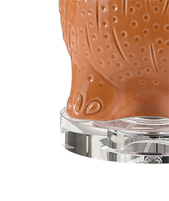 猫头鹰造型的台灯,底部使用透明K9水晶底座,颜色采用温暖华美的橘色。 橘色是所有色彩中最温暖的颜色,它融合了热情的红色和明媚的黄色更能彰显出独特的个性;而猫头鹰在希腊神话中是智慧女神雅典娜的爱鸟,是智慧的象征。
