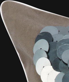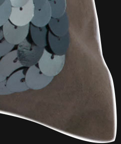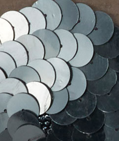 在全棉底布上装饰以绣花亮片,简约时尚,全部的亮片都是手工串连,缝制在底布面料上,圆形螺旋排列,需要经验丰富的手工艺人,才能保证图案的整齐有序。