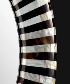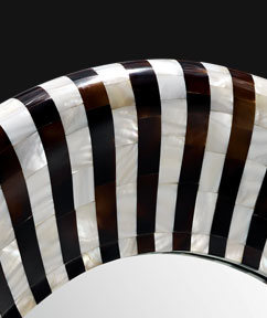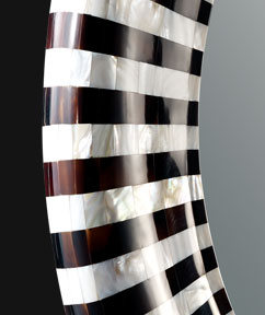需要经验丰富的艺术工匠对黑白贝壳进行巧妙地切割,富有艺术性嵌入,最后创造出一幅精美的图案,除有装饰镜的效果外还是一副绝美的装饰画。