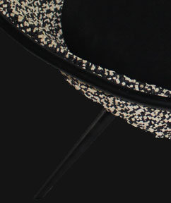本品使用椰壳珠进行手工串接,配以厚圆的软包座垫,使产品整体在休闲的外表下又展现了典雅的时尚之美。椰壳串珠均匀细密,做工精致,体现工匠的高超的工艺水平。